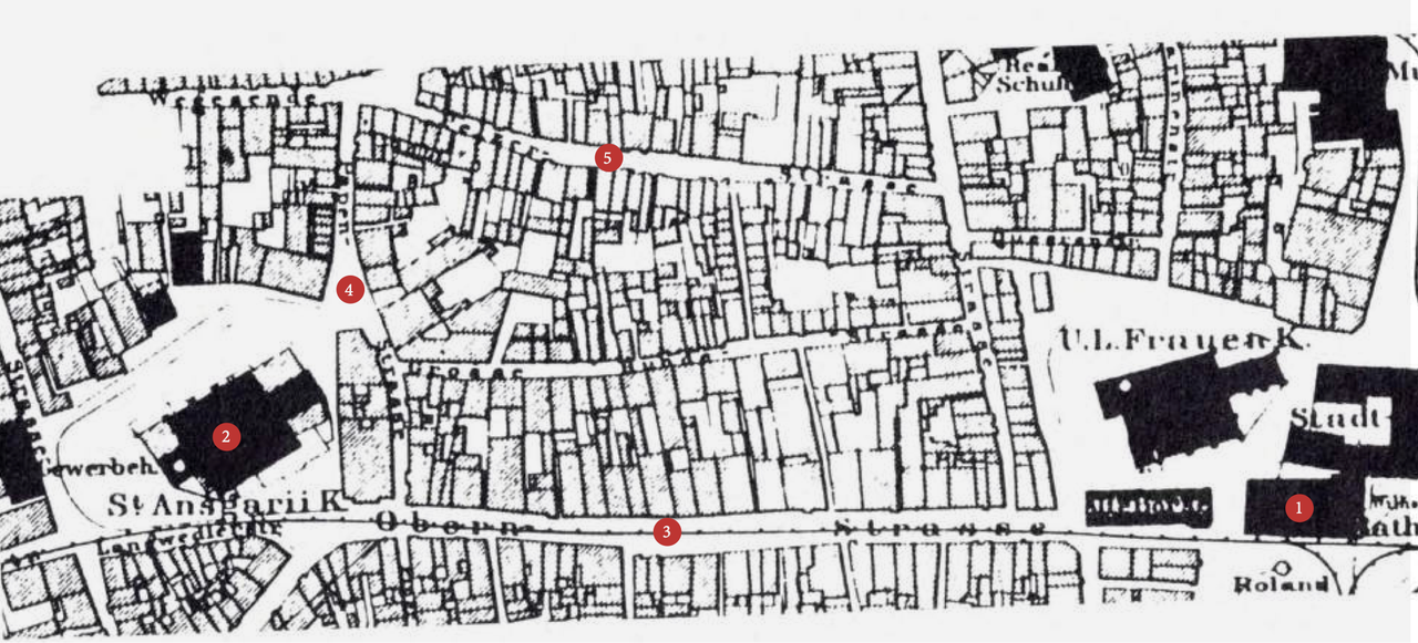 Dies ist der "gordische Knoten" gewesen, auf den in der Stadt seit 2017 alle gewartet haben. Ich bin trotzdem nicht übermäßig optimistisch, denn es ist schon die Rede zumindest von einem Teilerhalt des Gebäudes. Eine wirklich kleinteilige Neuplanung ist zumindest nirgends in Sicht. Trotzdem muss hier dringend etwas passieren und es ist zumindest wahrscheinlich, dass im Rahmen der Neugestaltung auch das Karstadtgebäude renoviert wird und der hässliche Anbau abgerissen wird, die "Kleine Hundestraße" oben im Bild würde genau auf Höhe dieses Anbaus auf die Obernstraße treffen und somit bei Abriss und Freilegung eine ganz neue Straße in der Altstadt entstehen.