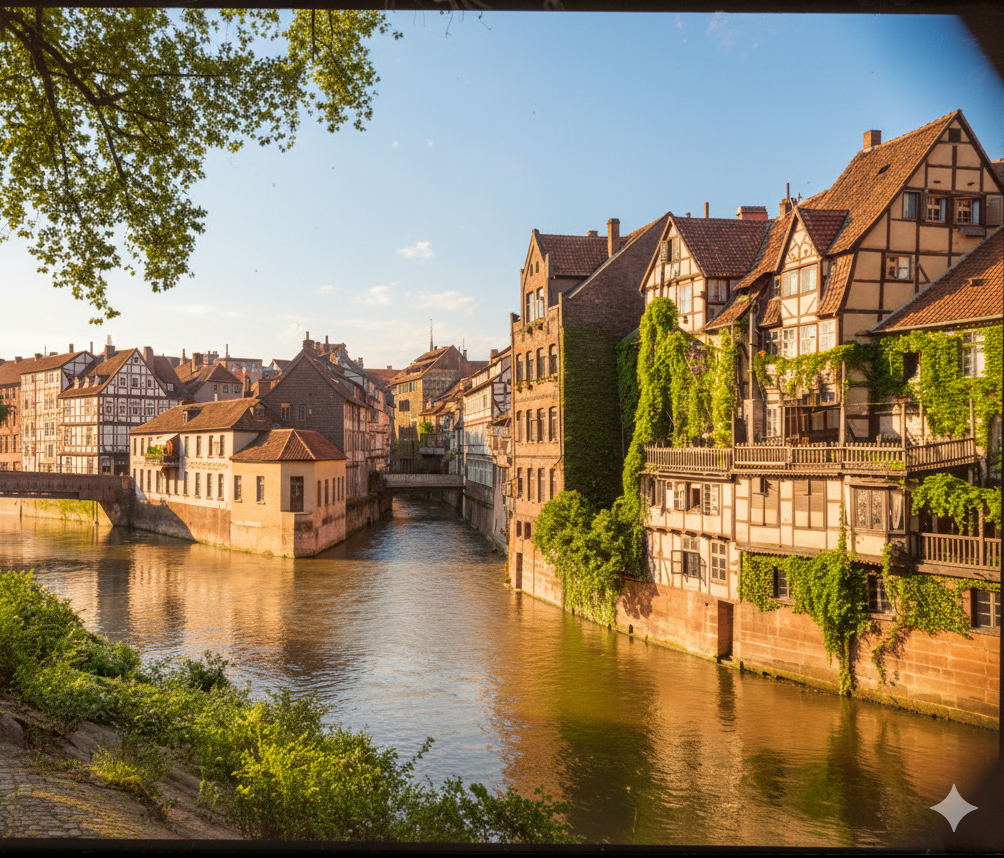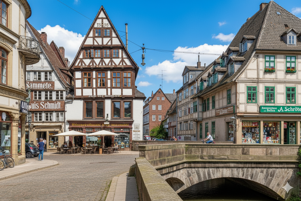 Ansichten aus dem unzerstörten Hannover. Zuerst eine der grössten Verluste, die Leineinsel auch bekannt als "Klein-Venedig"