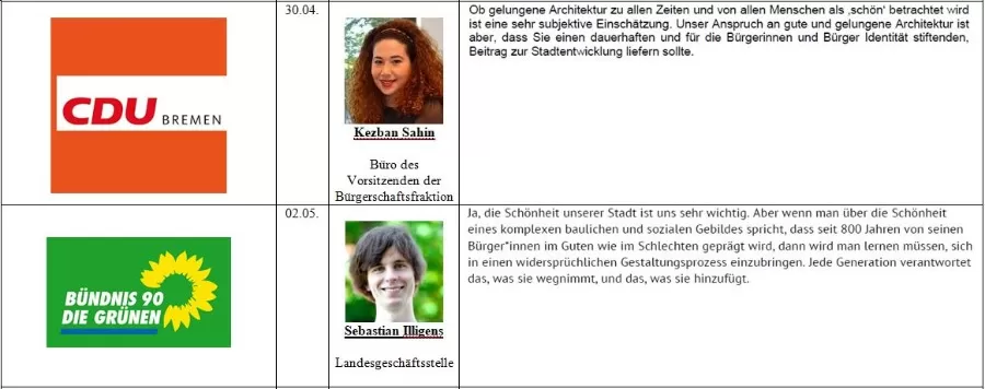 Die Antworten sollen – nach Fragen gegliedert – in der Reihenfolge ihres Einganges in den nächsten Tagen hier im Originalwortlaut eingestellt werden.