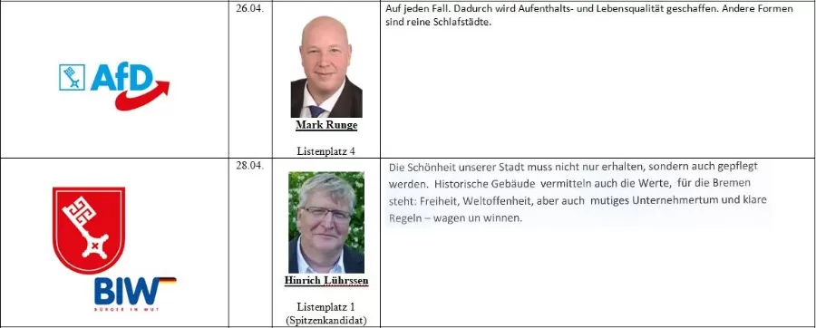 Am 26.Mai 2019 findet die Wahl zur 20. Bremischen Bürgerschaft statt. Der Verein Anschari i.G. – Vereinigung für das historische Stadtbild Bremens hat den sich zur Wahl stellenden Parteien, deren Spitzenkandidaten und Fraktionen fünf Prüfsteine vorgelegt.