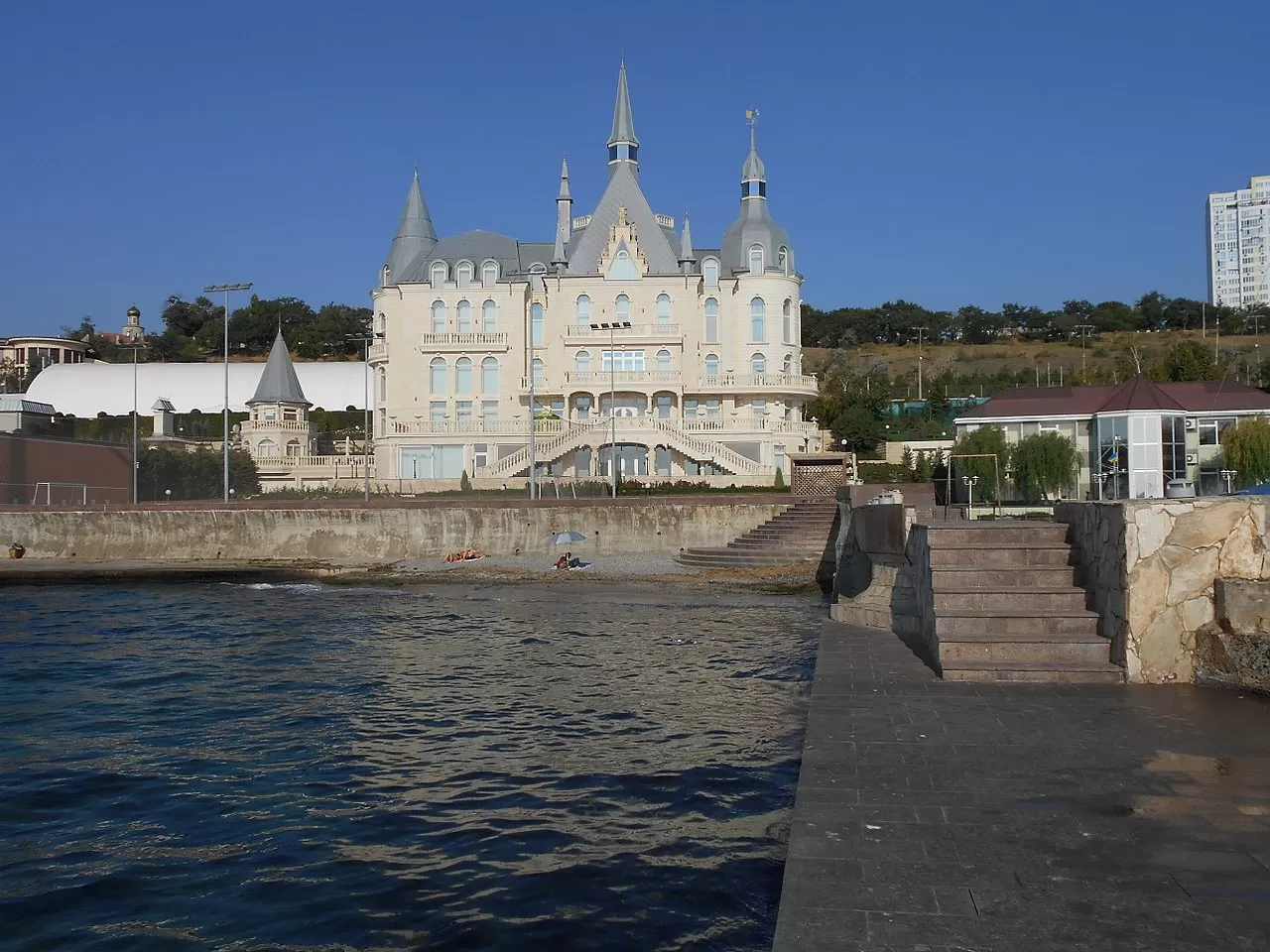 Odessa, 11. Station von Welykyj Fontan, Blick von der Mole zum Wohnhaus von Sergej Kiwalow