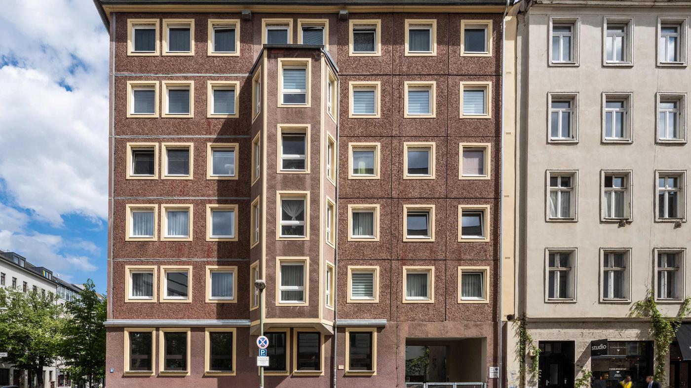 Die Fassade ist bis auf das Erdgeschoss (mittlerweile) tadellos.