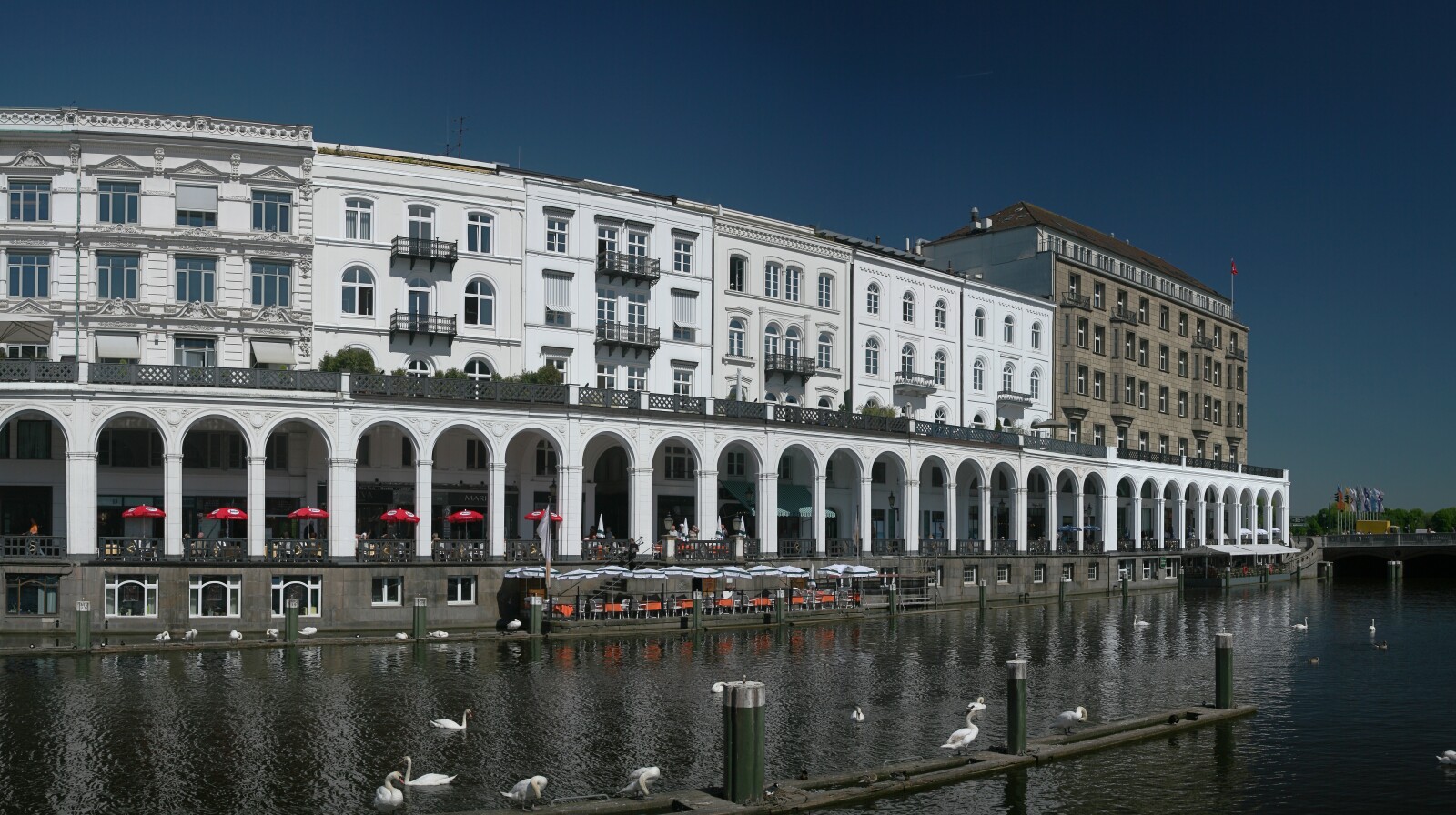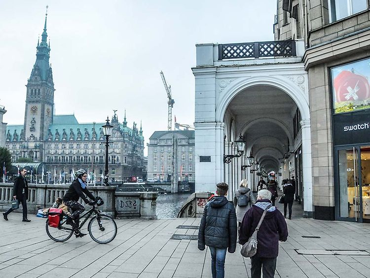 Als Zwischenlösung könnte ich mir zwar Kolonnaden (also reine Säulengänge) oder gärtnerische Laubengänge vorstellen, die kleine Pavillons verbinden. Aber mehr als eine Spielerei wäre das auch nicht. In den Pavillons könnte es kleine Kioske oder Ausstellungsmöglichkeiten geben. Das sinnlose Abstandsgrün würde ich in Mietergärten umwandeln, was einen Stadtraum ungemein beleben kann. Die Gärten kann man auch halbhoch abschirmen, damit sie nicht ganz direkt an die Straße grenzen.