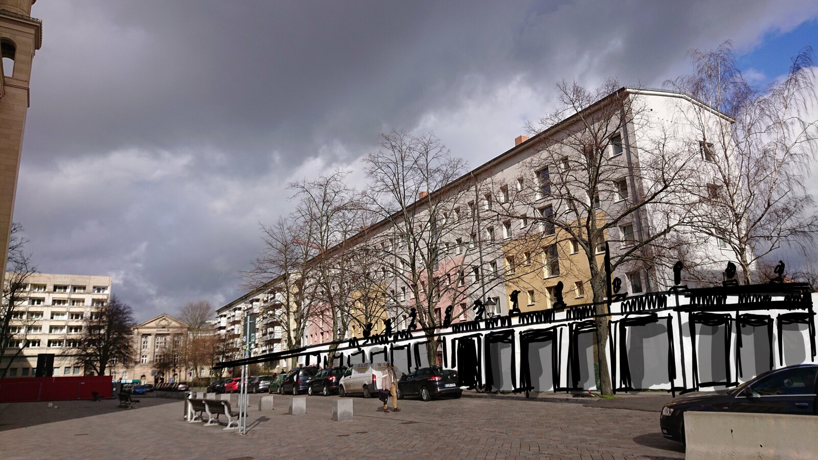 Richtig problematisch ist vor allem die Ecksituation. Das historische Eckgebäude wäre heute natürlich ein Schätzchen, aber auf den ersten Blick scheint es mir architektonisch nicht besonders einzigartig. Ich weiß aber nichts über den Bau. Das Gelenk zwischen St. Nikolai und Altem Rathaus stattdessen mit einem Neubau in klassischer Formensprache zu füllen, könnte reizvoll sein. Die Grenzen der blauen Einzeichnung in "Johan Maurits" Grafik wären ein Ansatz dafür. Das Rechteck ließe sich bis zum nächsten DDR-Bau in Ost-Richtung ziehen, damit ergäben sich immerhin rund 430 m² Grundstücksfläche. In den Blöcken, die gerade fertiggestellt wurden, gab es kleinere Grundstücke, finanziell wäre mit 430 m² also etwas machbar.