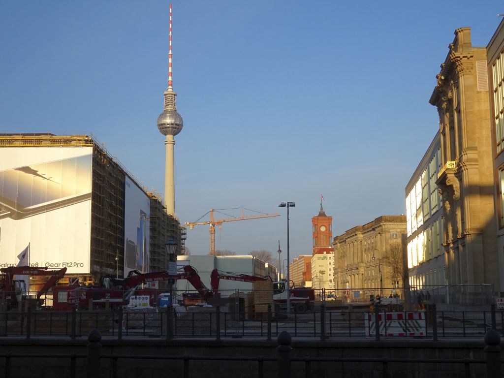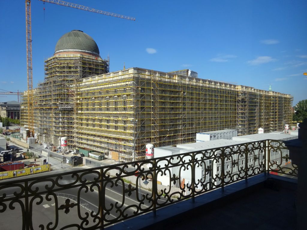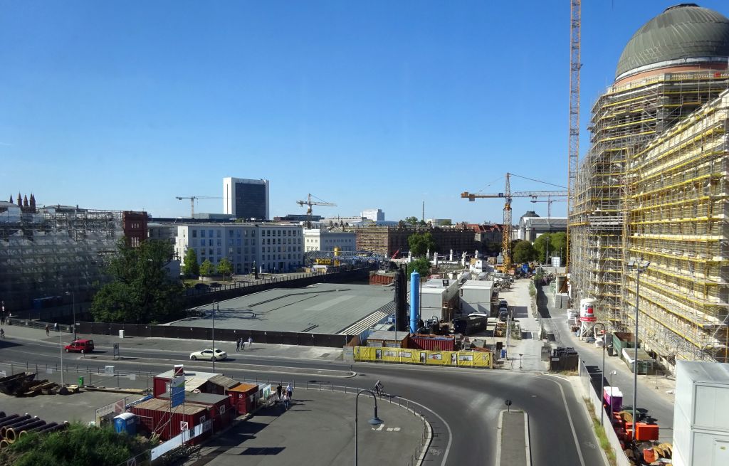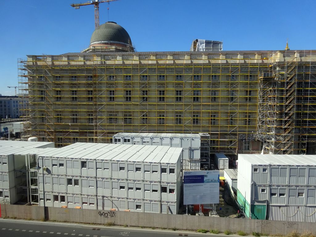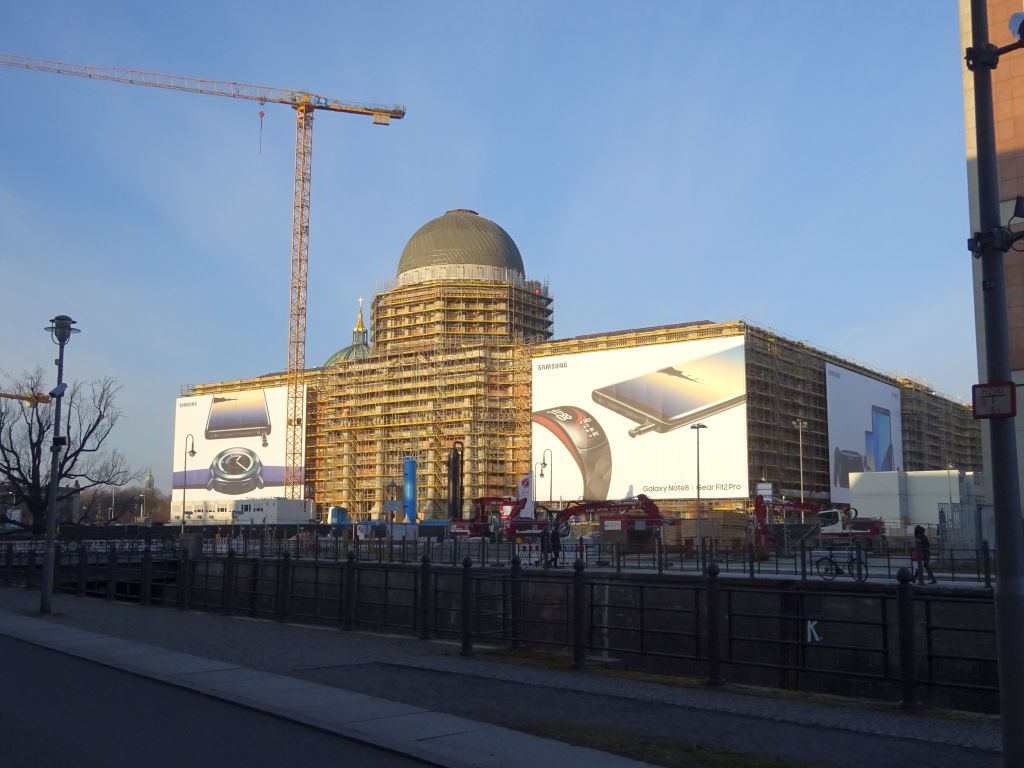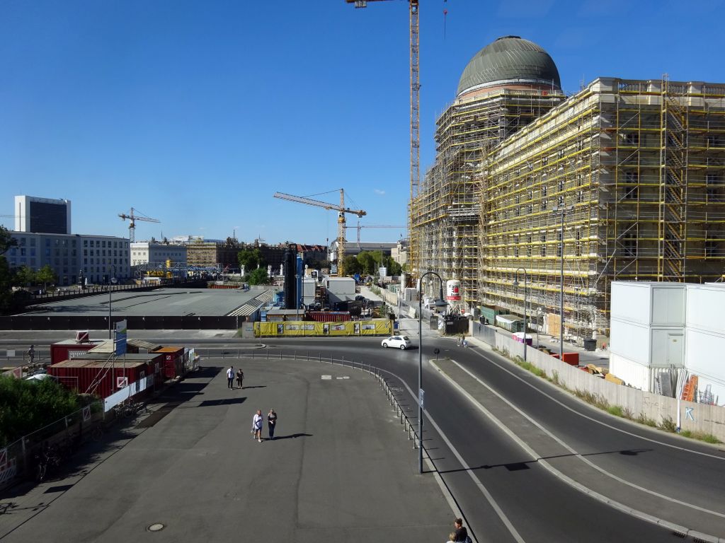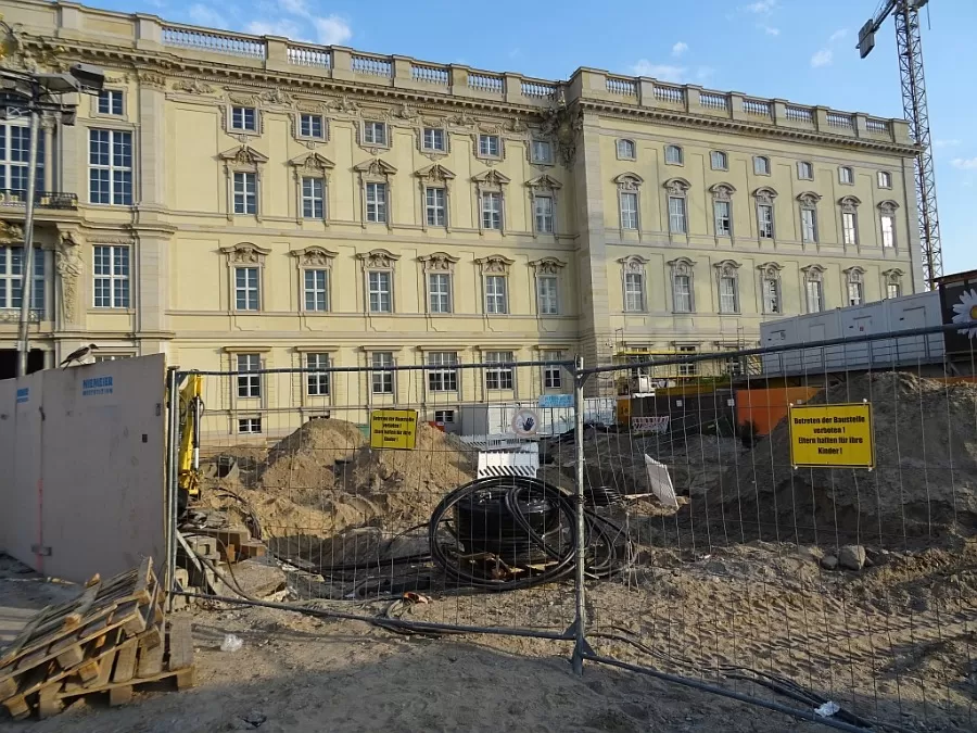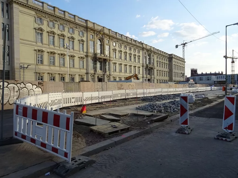 von unter den linden kommend der schlossplatz, samt temporärer kunsthalle (rechts)
