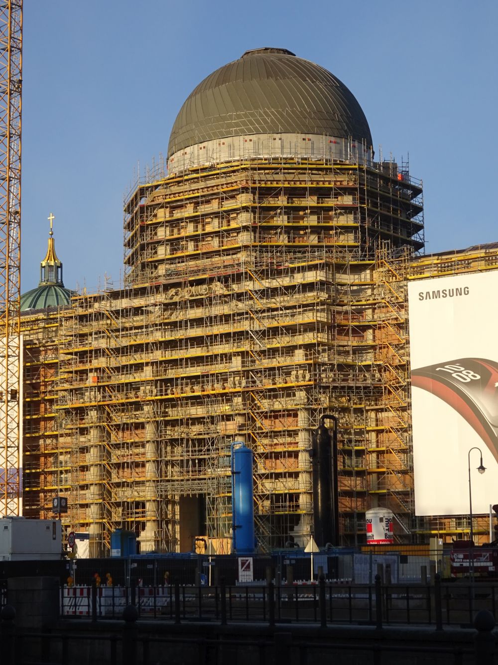 die schlossfreiheitbox, auf der ganz klein werbung für cubie.eu gemacht wird und dahinter das staatsratsgebäude mit dem berühmten portal: