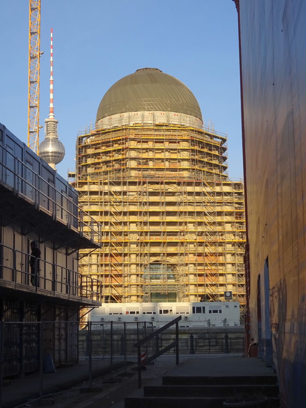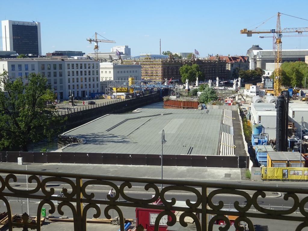blick in richtung alexanderplatz, diese stege sind die wege, die die archäologischen ausgrabungen den besuchern zugänglich machen. (interessant sind die infotafeln, die es überall gibt!)