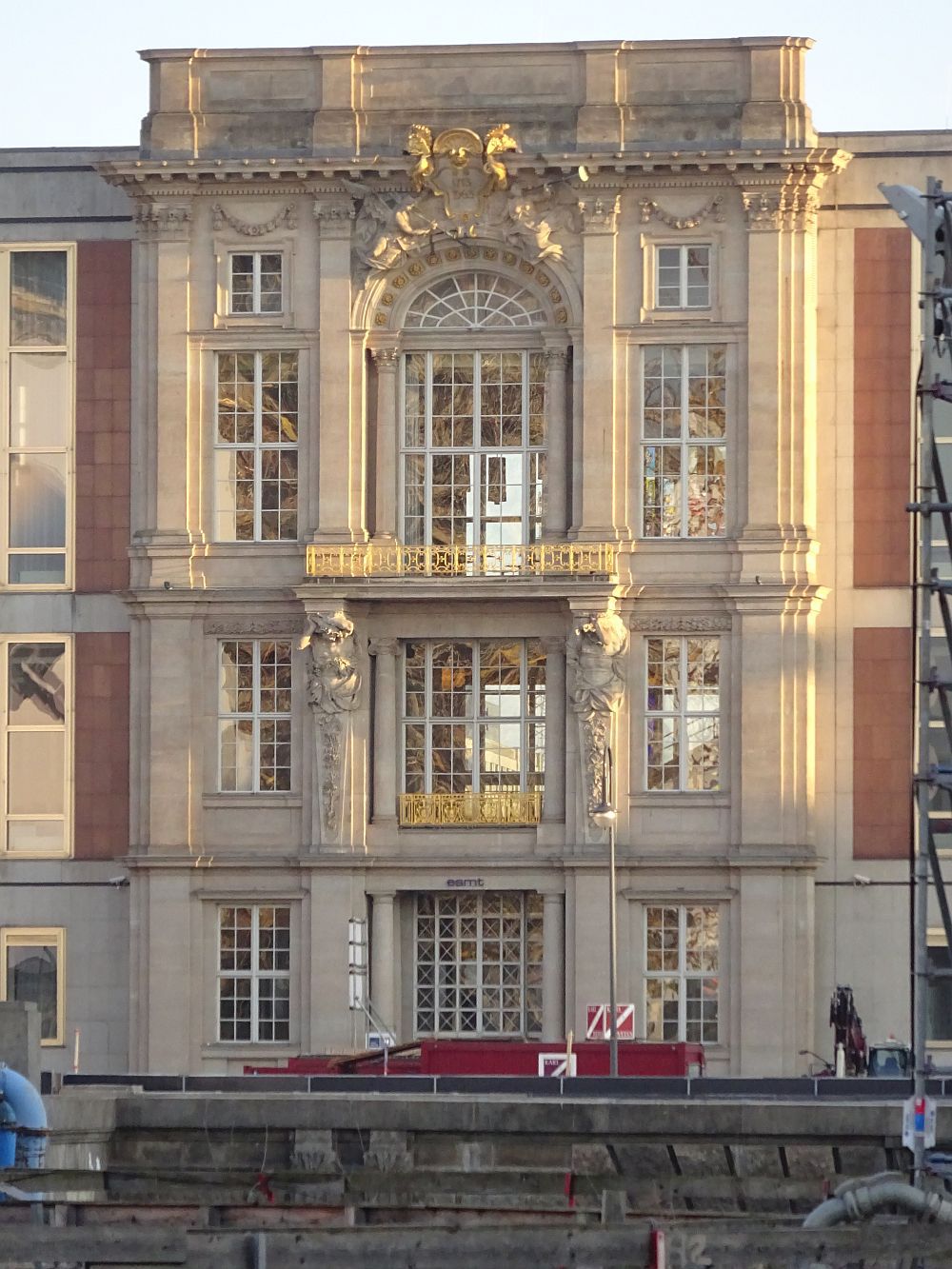 das blaue da hinten ist die kunsthalle. hier wird uns dann bald stellas - hoffentlich überarbeitete - ostfassde zum "lustwandeln durch treppenhäuser" einladen