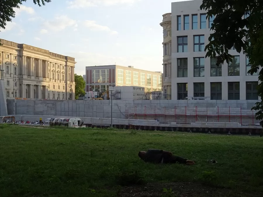 das marx-engels-forum an der spree. dass hier was geschehen muss, spätestens wenn das schloss steht, ist offensichlich